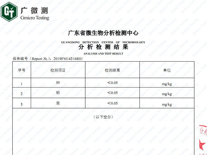 我司研發(fā)的植物精油甲醛凈產(chǎn)品不同于市場(chǎng)上傳統(tǒng)的光觸媒產(chǎn)品,除了在施工過程中不需要光照外,在除甲醛效果上遠(yuǎn)遠(yuǎn)優(yōu)于傳統(tǒng)光觸媒產(chǎn)品。此次送檢的樣品批次為9月份新產(chǎn),經(jīng)過廣微測(cè)的嚴(yán)格無毒檢測(cè)證明,所有重金屬和有毒成分含量幾乎為零。也就是說甲醛凈為無毒安全產(chǎn)品。以下為檢測(cè)報(bào)告截圖: