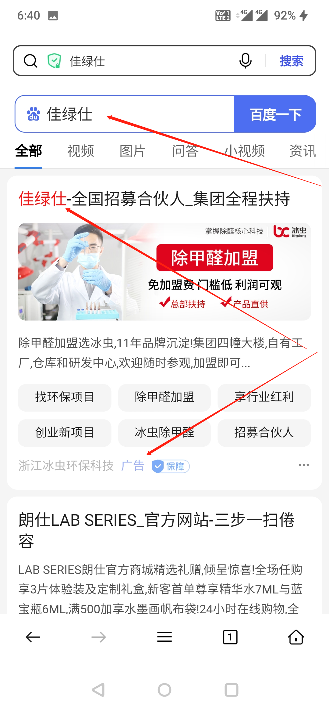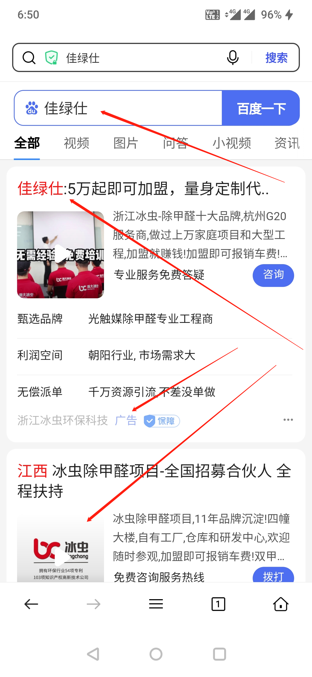 浙江冰蟲環(huán)??萍加邢薰纠梦宜旧虡?biāo)"佳綠仕"進(jìn)行百度搜索關(guān)鍵詞宣傳,嚴(yán)重影響我司合法權(quán)益。